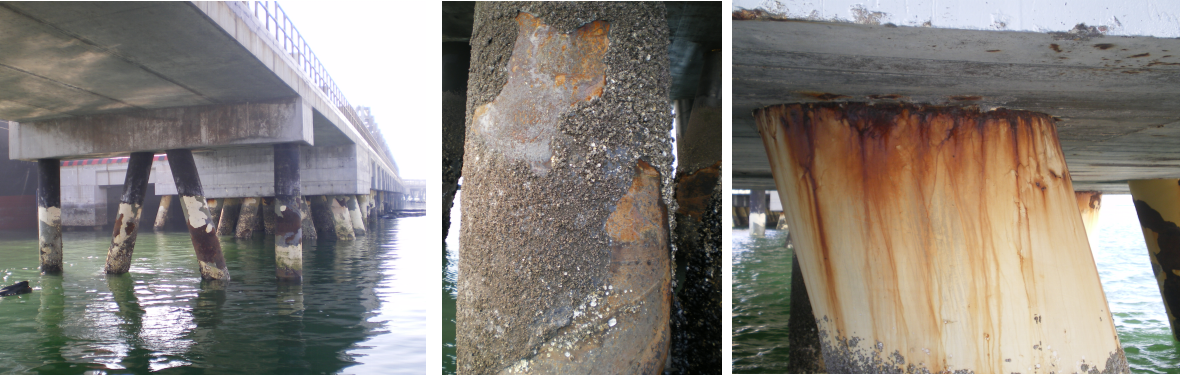 Sea is a kind of very harsh corrosive environment, especially the splash zone. The surface of the steel is periodically wet by the seawater. It is always under the alternate state of dry and wet. The sufficient oxygen is supplied. The salt is continuously concentrated. Besides, under the synergistic effect of sunshine, wind and seawater, the corrosion is very serious. In general, for the same steel, the corrosive speed in the splash zone will be 3~10 times faster than that in the immersion zone of sea.
